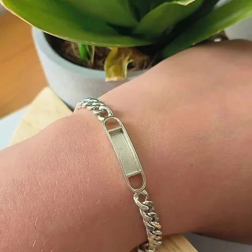 A sterling silver curb chain bracelet with a setting ready to fill with your precious inclusions,